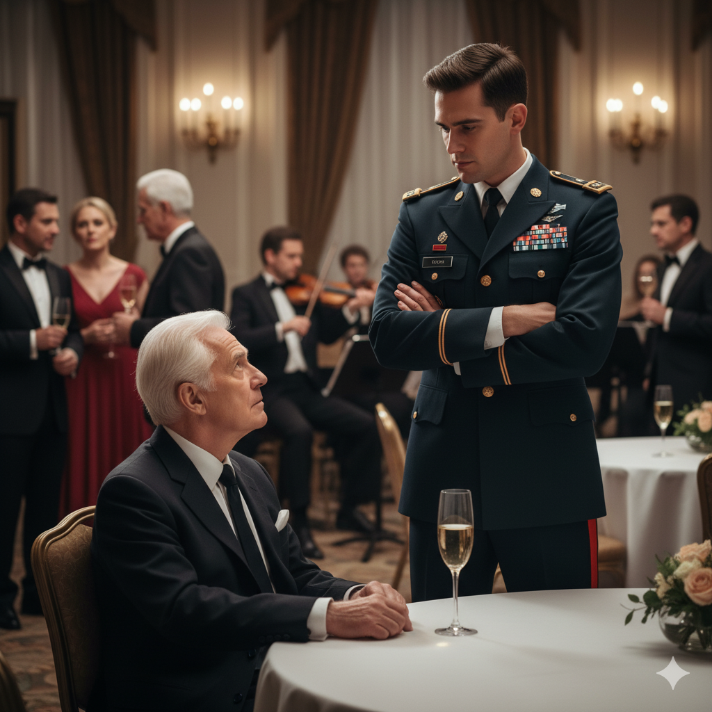 The entire room seemed to narrow to the space between them. The old man looked Colonel Matthews dead in the eye. When he spoke, his voice was low, but every person nearby heard it as clearly as a gunshot in a library.