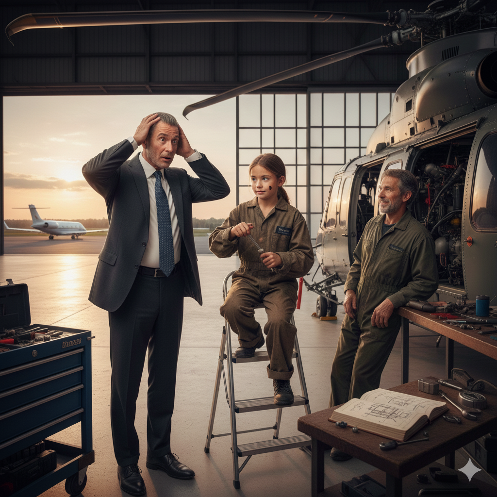 A Billionaire Watched in Shock as a 9-Year-Old “Mechanic’s Daughter” Fixed His $15 Million Helicopter — What He Discovered About Her Father Changed Everything