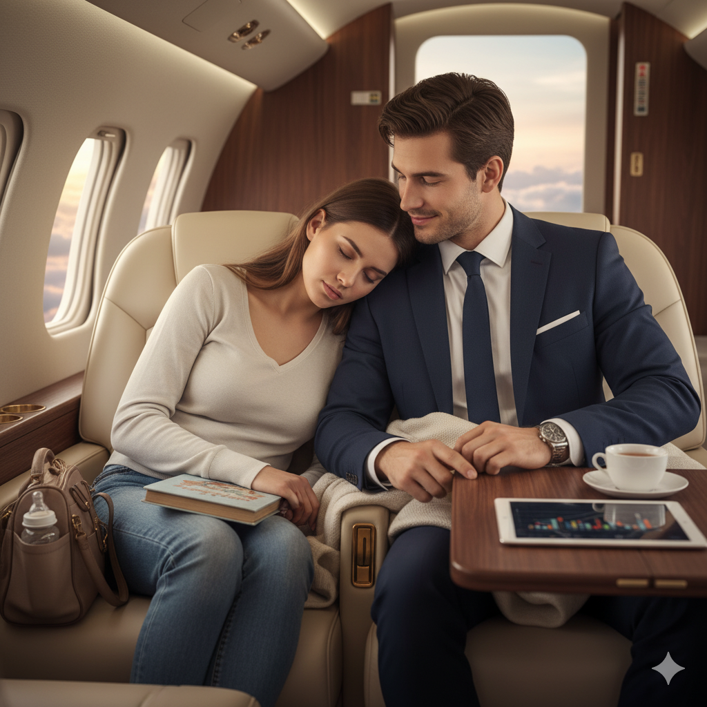 But the moment her eyes shut, her body leaned sideways… and gently landed against the man in seat 14B.
