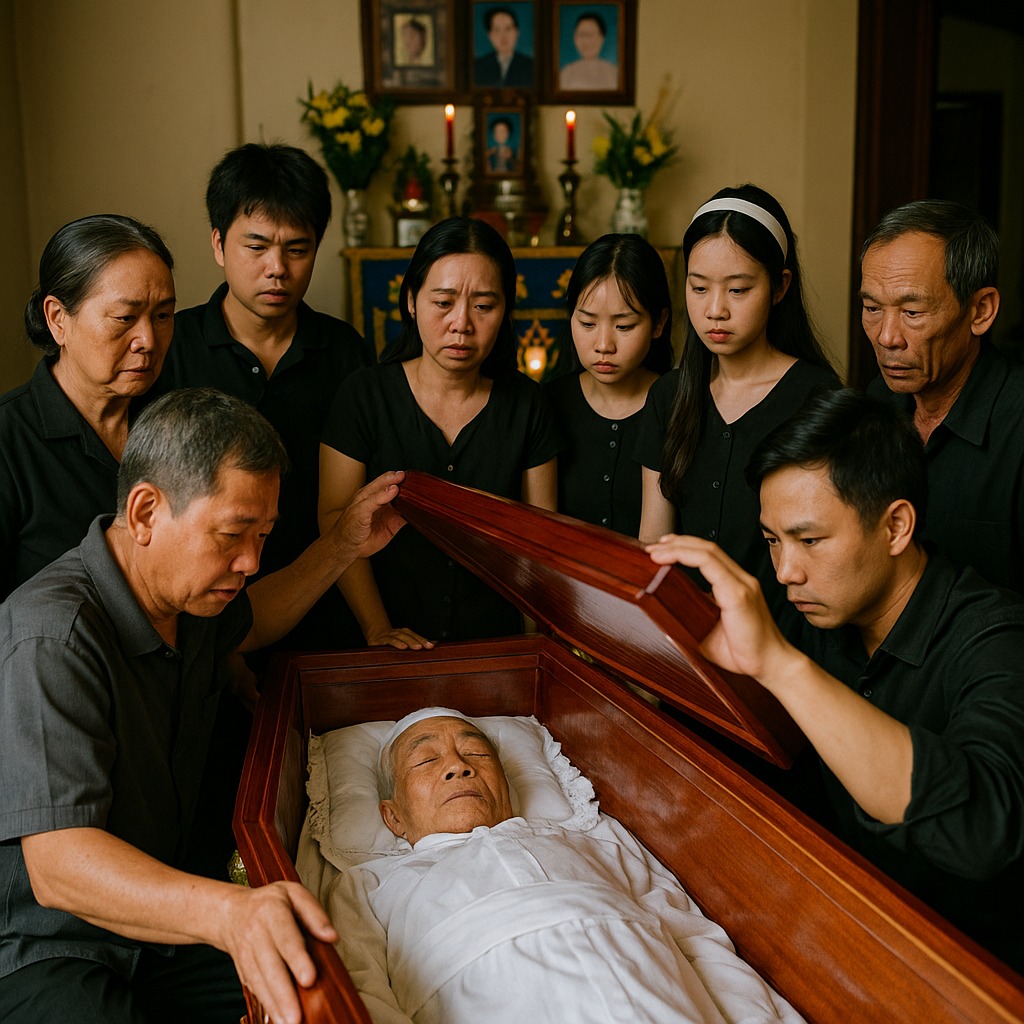 Cả nhà tổ chức tang lễ theo đúng phong tục, đặt quan tài giữa phòng khách, có người túc trực suốt ngày đêm.