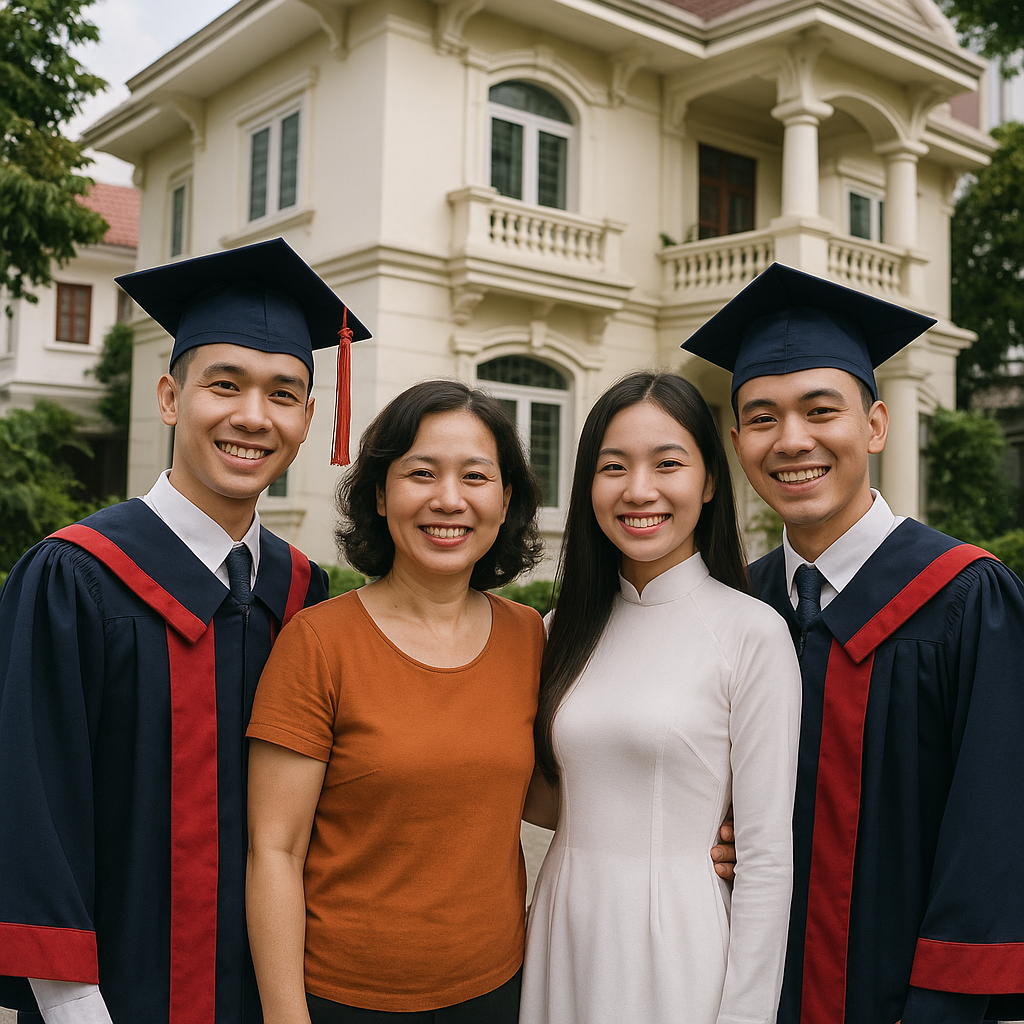 Là Khôi, Khang và Vy xây tặng. Một căn biệt thự hai tầng, có vườn, có sân, có phòng đọc sách riêng cho chị. Trong lễ mừng nhà mới, ba người em quỳ xuống trước mặt chị, nghẹn ngào: