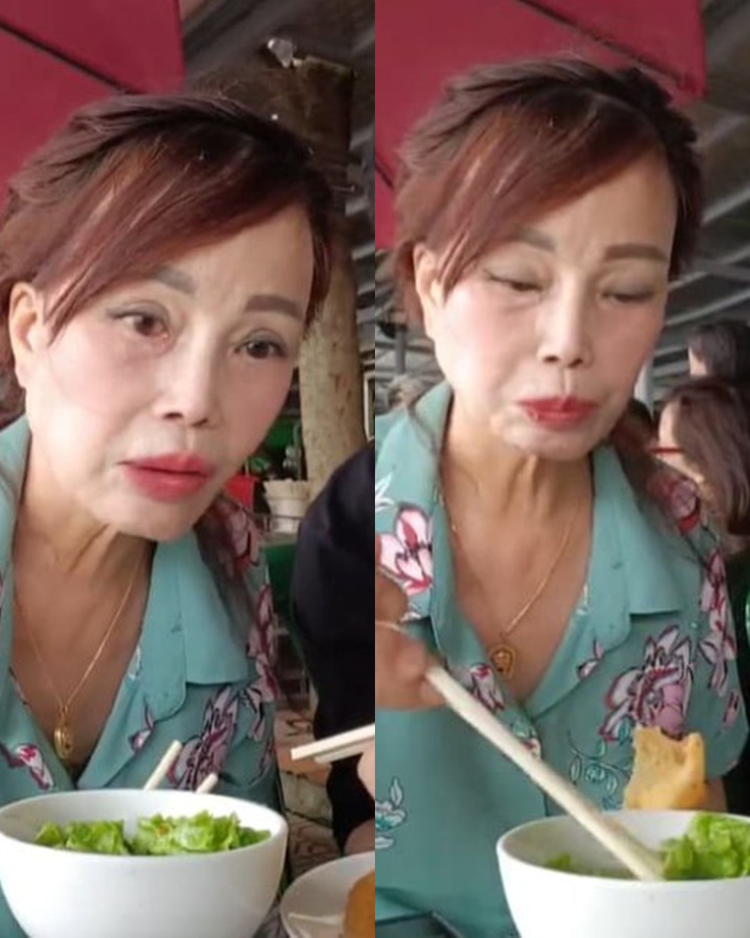 Khác với ảnh tự đăng, qua livestream dễ dàng nhận ra ‘Cô dâu U70’ Thu Sao cũng không tránh nổi quy luật lão hóa của thời gian.