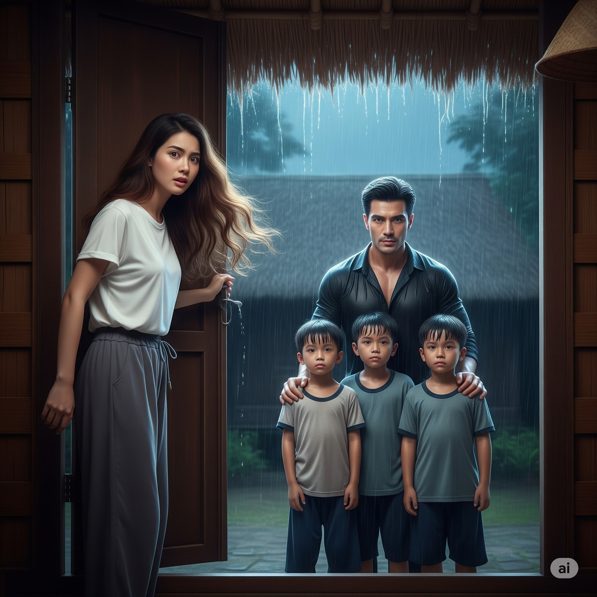 Cô vội chạy ra. Trước mắt cô là một người đàn ông khoảng ngoài 30 tuổi, áo ướt sũng, bên cạnh là ba đứa trẻ khác tầm 5 đến 10 tuổi, mặt mũi lấm lem nước mưa, run rẩy vì lạnh.
