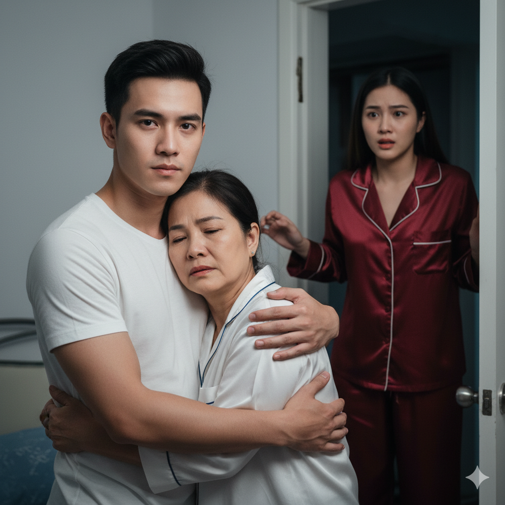 Hương khụy gối ngoài cửa. Từng giọt nước mắt lăn dài trên má cô. Ba năm qua, cô trách anh vô tâm, trách mẹ chồng giữ con trai, nhưng nào ngờ… Cô lặng lẽ trở về phòng. Sáng hôm sau, khi Tuấn vừa đi làm, Hương mua thuốc bôi dịu nhẹ, khăn mềm, rồi sang phòng mẹ chồng.