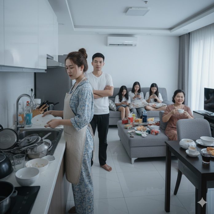 Từ sáng sớm, tôi phải lo bữa sáng cho cả nhà, đi làm về lại tất bật cơm nước, dọn dẹp, giặt giũ. Ba em chồng chẳng ai động tay, cứ vô tư ăn xong là nằm xem tivi hoặc lướt điện thoại. Mẹ chồng còn ngang nhiên nói: