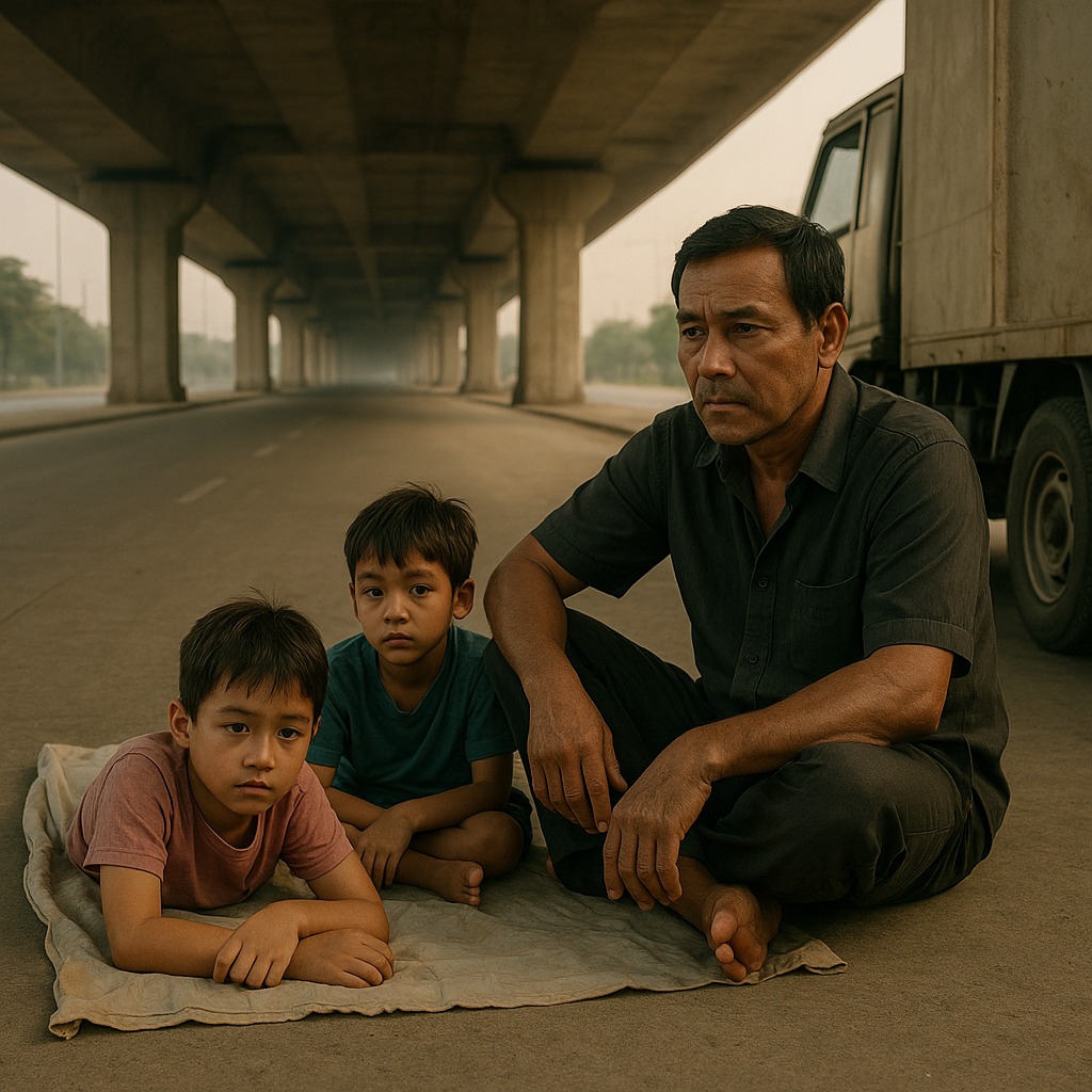 Dưới gầm cầu bê tông cũ kỹ ở ngoại ô một thị trấn nhỏ, hai anh em mồ côi, Hùng và Tí, sống chen chúc trong một túp lều dựng từ bìa cứng và vài tấm nylon rách. Hùng, 13 tuổi, gầy gò nhưng đôi mắt sáng quắc, ngày ngày lội bộ khắp thị trấn nhặt ve chai, kiếm vài đồng mua gạo. Tí, em trai cậu, mới 8 tuổi, nhỏ bé, tóc cháy nắng, thường ngồi co ro bên lề đường chờ anh về. Cha mẹ mất sớm trong một vụ tai nạn, hai anh em chỉ có nhau, nương tựa giữa cái lạnh buốt của những đêm mưa và cái đói cồn cào mỗi sáng.