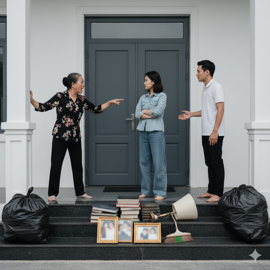 “Mẹ… hay mẹ tạm tìm chỗ khác ở, để bọn con dễ sinh hoạt hơn.”