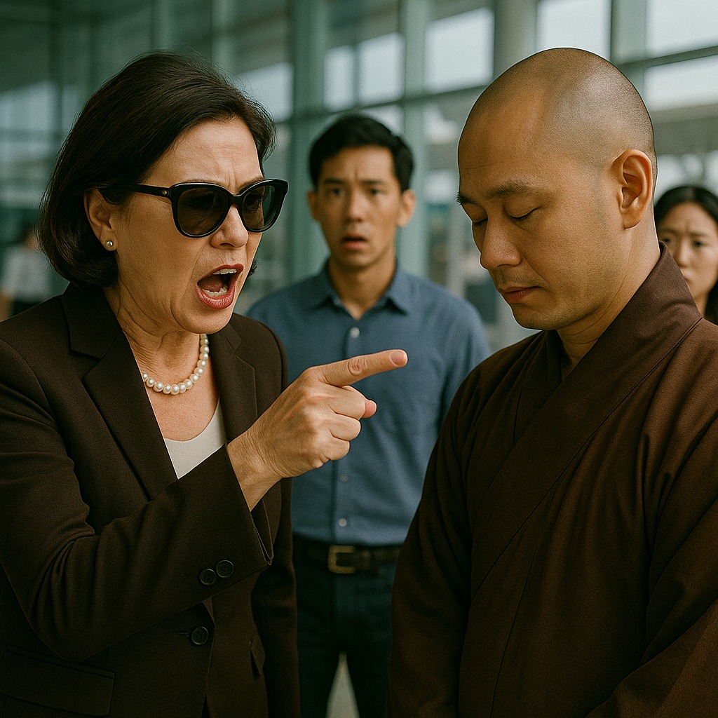 Nữ tỷ phú lớn tiếng x///ỉ v//ả nhà sư ở sân bay