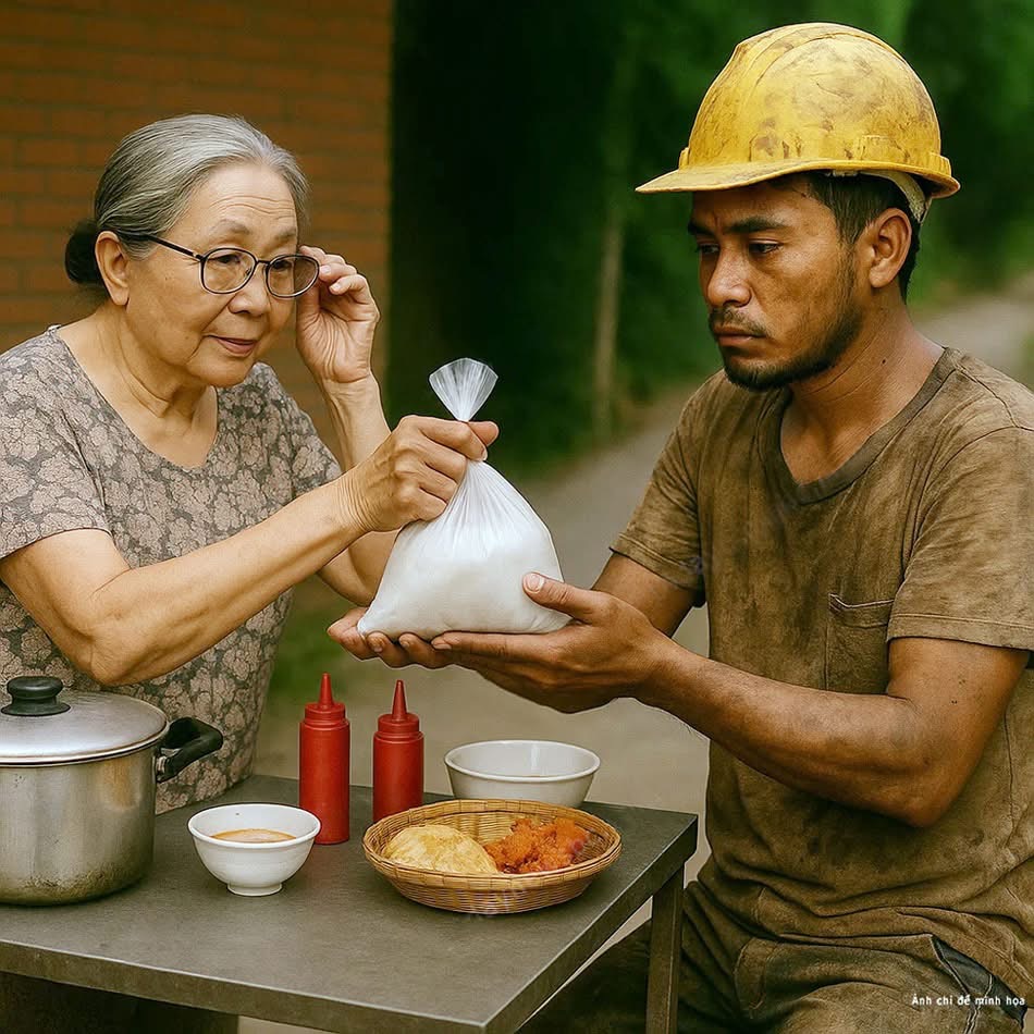 Thế là ngày nào cũng vậy, bà Năm chắt lọc những phần cơm còn ăn được – đôi khi là ít canh, chút thịt kho – gói gọn trong hộp xốp rồi đưa cho anh. Anh luôn cúi đầu cảm ơn, rồi nhanh chóng rời đi.