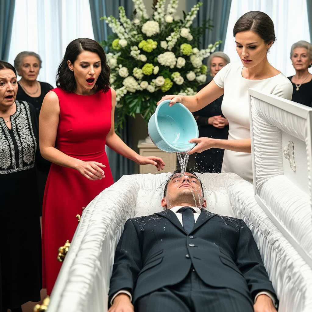 The funeral parlor was drenched in silence, the kind that pressed heavily against the chest. White lilies lined the walls, their sweet scent clashing cruelly with the grief in the room. At the center lay a polished white coffin, open, revealing the still figure of Daniel Wright, dressed in a black suit he had worn only once before—at their wedding.