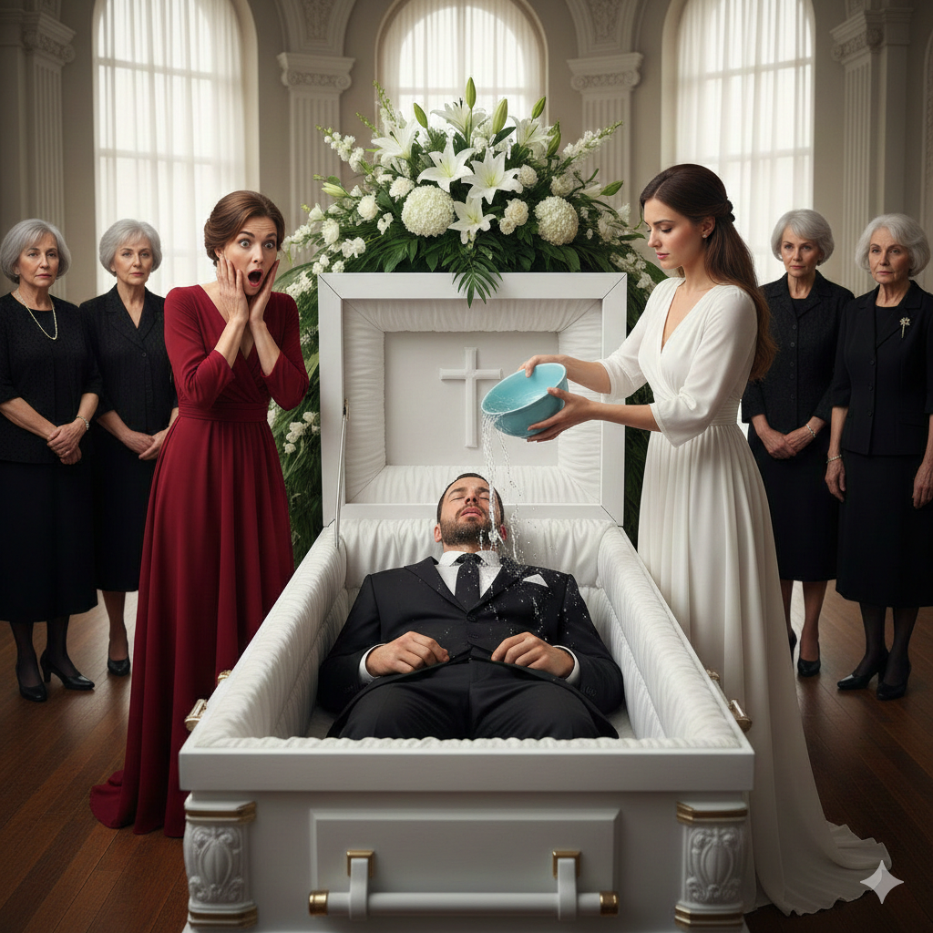 The funeral parlor was drenched in silence, the kind that pressed heavily against the chest. White lilies lined the walls, their sweet scent clashing cruelly with the grief in the room. At the center lay a polished white coffin, open, revealing the still figure of Daniel Wright, dressed in a black suit he had worn only once before—at their wedding.