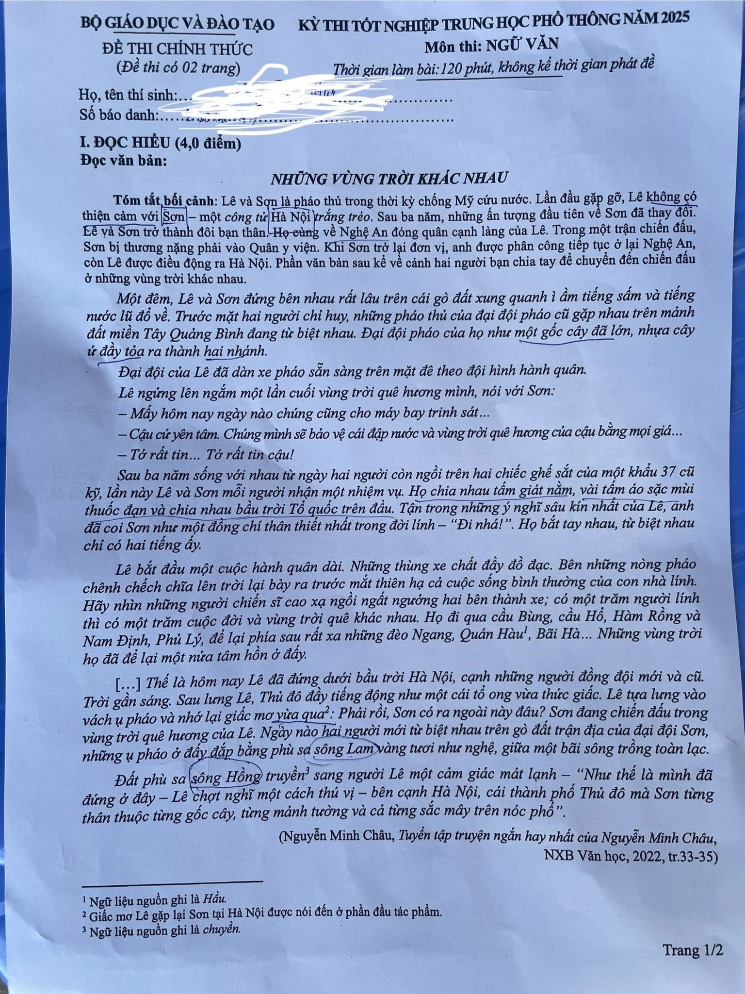 Đáp án đề thi môn Ngữ văn tốt nghiệp THPT năm 2025 chính xác- Ảnh 1.