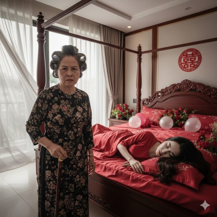 Sau khi hôn lễ hoàn tất, bà dọn dẹp nhà cửa rồi mệt quá lăn ra ngủ, trong khi con trai và con dâu cũng đã vào phòng riêng từ lâu. Nhưng sáng hôm sau bà dậy từ 5 giờ sáng tiếp tục dọn dẹp lại lần nữa vì nhà cửa bám bẩn, dầu mỡ. Nhưng mãi đến 10 giờ lưng còng hết cả mà vẫn không thấy trên lầu có động cựa gì.