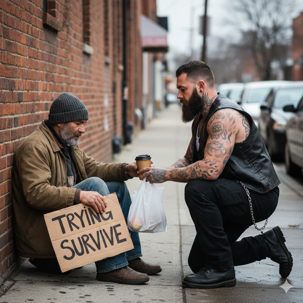 One biker stared out toward the road and answered quietly. “Because we’ve all been knocked down. The difference is—someone helped us back up.”