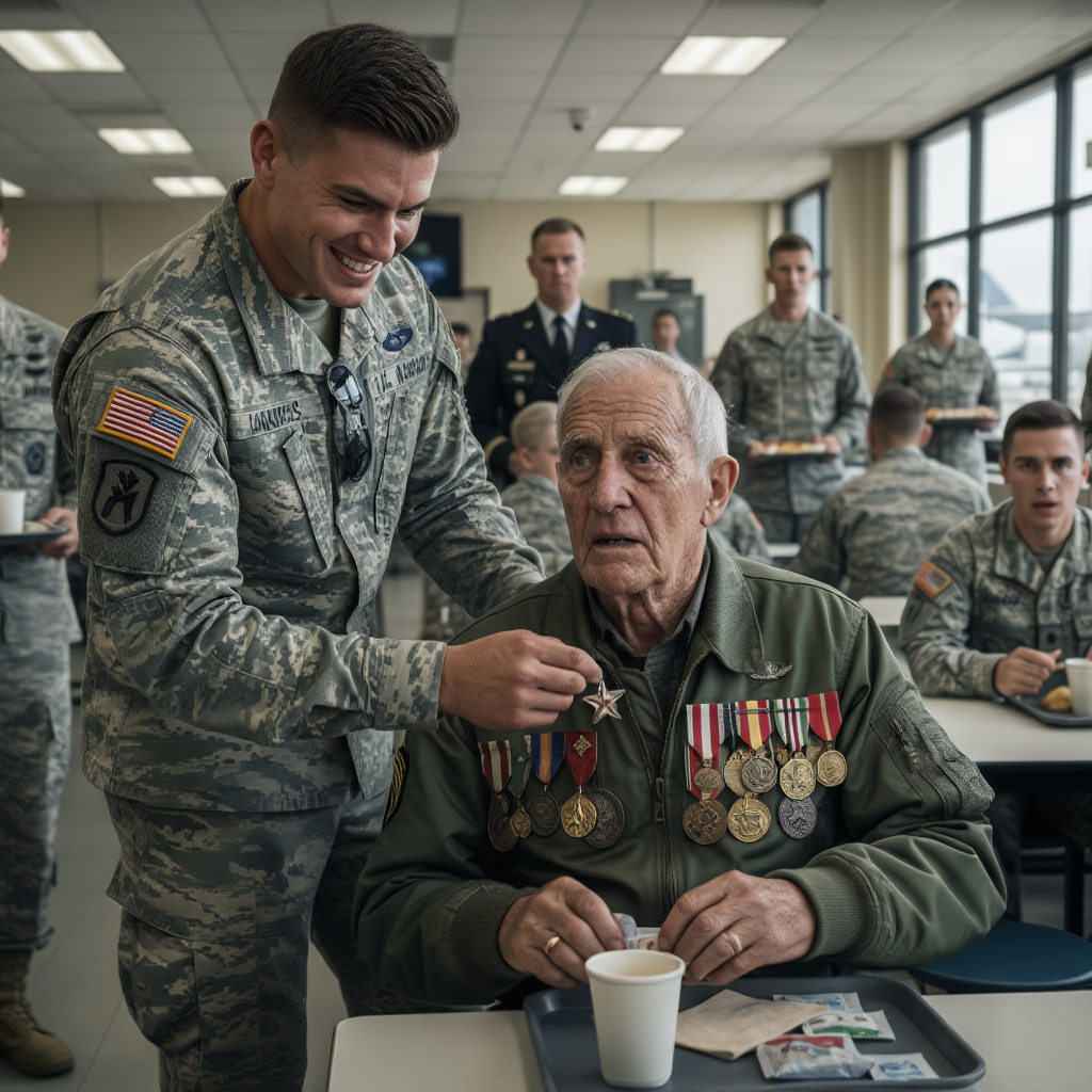 The airbase cafeteria was as loud as ever—young soldiers boasting about morning drills, trays clattering, boots stomping on polished floors. Most of them were fresh recruits, still fueled by raw confidence and the thrill of wearing the uniform.