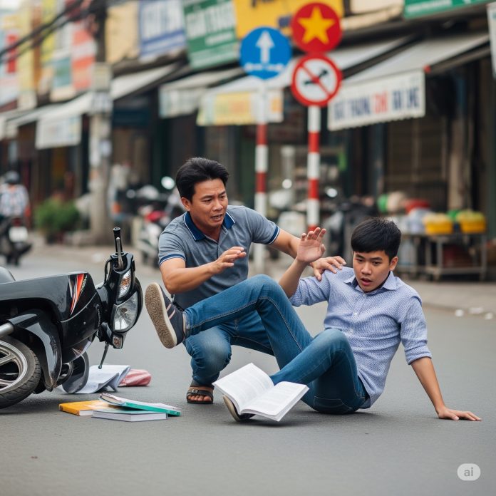 Nhưng khi xe vừa đến đoạn đèo vắng – cách điểm thi chỉ vài cây số – thì bất ngờ rầm! Một chiếc ô tô từ phía đối diện mất lái tông ngang. Chiếc xe máy văng ra vệ đường, bố anh nằm bất động dưới mưa, máu chảy loang trên mặt đường.