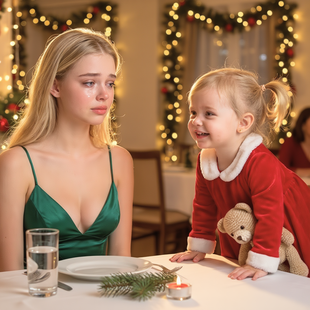 A small girl, no more than five, stood beneath the tree hugging a stuffed reindeer, tears streaking her rosy cheeks. She wore a tiny red coat and sparkly boots, but her face was crumpled in despair.