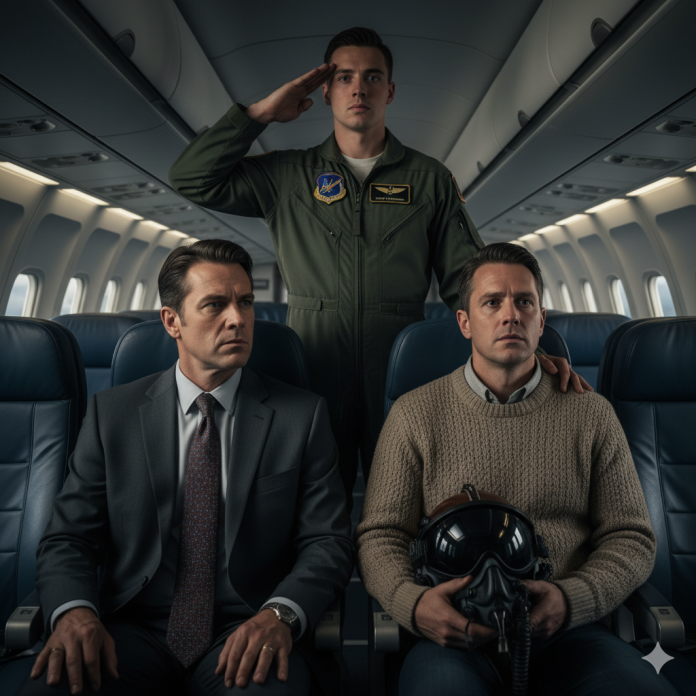 A tall man in a flight suit boarded, helmet under his arm, silver oak leaves on his shoulders — a Lieutenant Colonel. His posture was crisp, eyes scanning each row like radar.