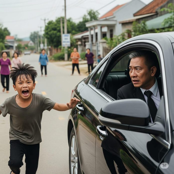 Chiếc Mercedes đen bóng lướt trên con đường làng nhỏ hẹp đầy ổ gà. Trong xe, ông Tân – chủ tịch tập đoàn xây dựng lớn – ngả lưng, mắt lim dim. Hôm nay ông về quê khảo sát dự án khu nghỉ dưỡng sắp triển khai. Bên cạnh ông, cậu bé phụ xe khoảng mười hai tuổi, gầy nhom, áo thun đã sờn, lấm tấm bùn đất.